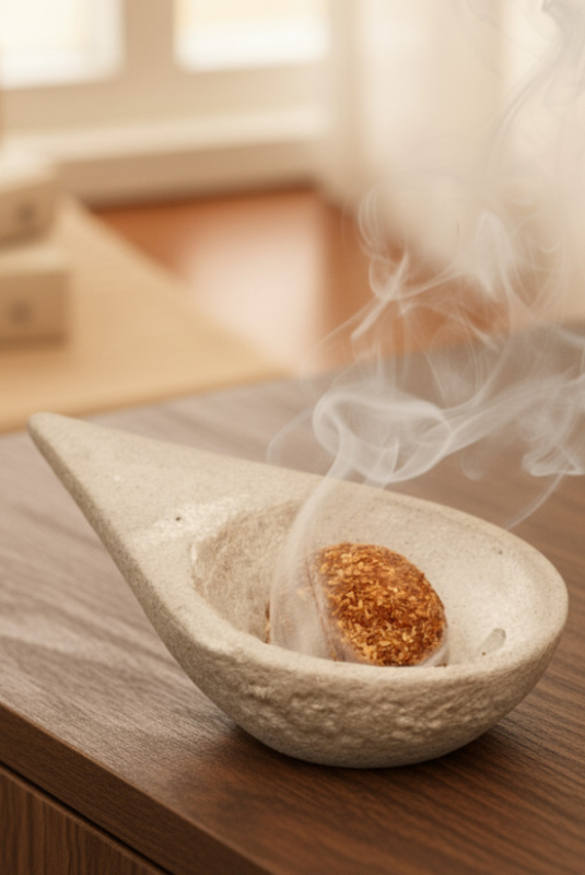 ¿Sahumado con hierbas o resinas? Coloca un carbón encendido y déjate llevar por los aromas del copal, la salvia o el palo santo.